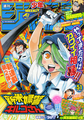 Shinmai Fukei Kiruko-san, também conhecido como Rookie Policewoman estreou na edição #51 da Shonen Jump 2012, e como de tradição na revista foi a capa e também teve páginas coloridas. Porém em nenhum momento recebeu 1/3 da publicidade da outra série estreante, Hungry Joker.