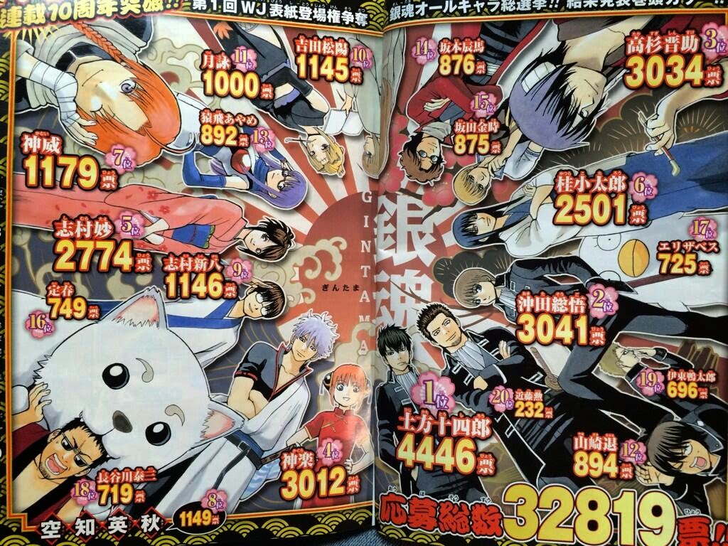 Ranking de “Popularidade” em Gintama (Na verdade foi um ranking para quem ficaria ao lado do Gintoki na capa). . Surpreso pelo personagem que ficou em primeiro?