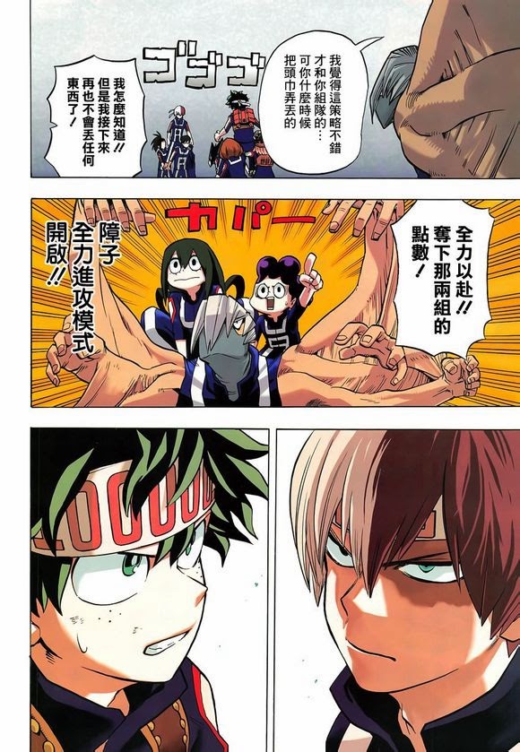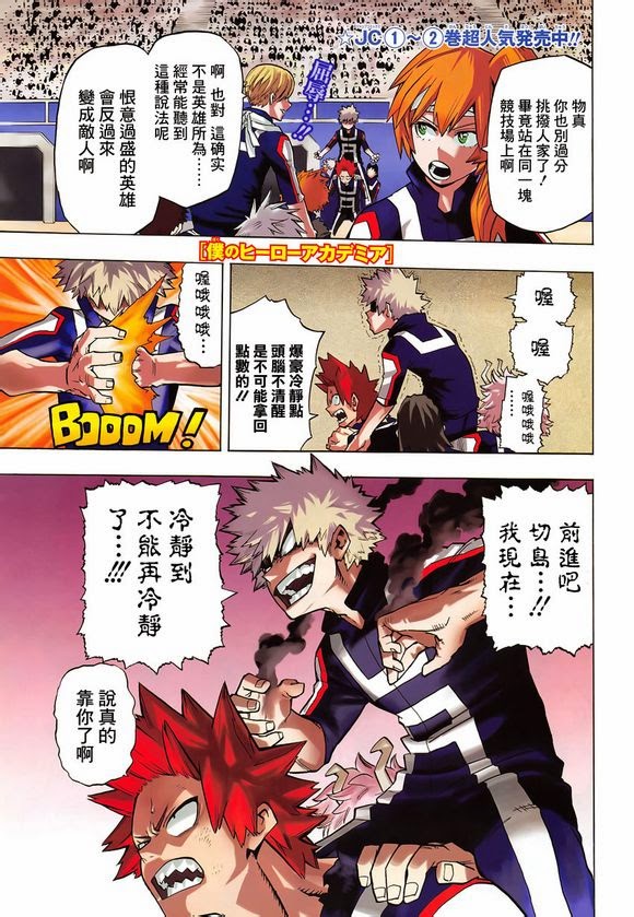 Nesta mesma edição tivemos página colorida para Boku no Hero Academia, que já vendeu mais de 300 mil cópias com seu Volume 01 e conseguiu vender mais de 230 mil cópias no segundo (Que ainda esta vendendo bastante). Vendo o sucesso gigantesco que o mangá esta fazendo, a Shonen Jump deu 4 páginas coloridas seguidas para Boku no Hero Academia nesta edição, uma ação bem legal, fico imaginando como será Boku no Hero Academia todo colorido, seria épico.