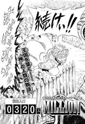 Chance de Serialização: Altíssima. O mangá foi o mais aceito na 2ch, recebendo a nota mais altas de todos os one shots das últimas 6 edições… No Blog Rankings a aceitação foi um pouco mais leve, sendo o terceiro mangá mais bem votado, mas mesmo assim a obra teve uma ótima aceitação do público. Million Kingdom tem tudo para ser serializado, porém, o seu desafio agora é entregar aos editores uma sequência de três capítulos bem convincentes, principalmente pelo fato do one shot ter uma história bem fechada.