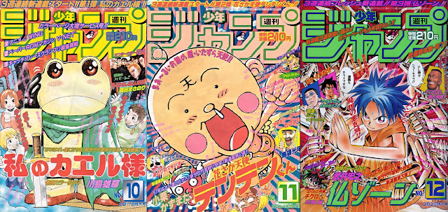 Em relação as estréias, com três autores novatos, a Shonen Jump lançou uma estranha leva. Na edição #10 foi lançado Watashi no Kaeru-Sama, um simpático B-Shounen sobre um sapo samurai, o mangá criado pelo novato Yuki Nakajima. Na edição #11 foi lançado Hanasaka Tenshi, o mangá de comédia do novato Kazumata Oguri e por fim, o mais esperado da leva por ser o grande “B-Shounen”, Butsu Zone do também novato Hiroyuki Takei. Uma leva que praticamente todo mundo só esperava por Butsu Zone e ignoravam os demais mangás, por não acharem que iria muito longe, principakmente Hanasaka que tinha tudo para passar batido.