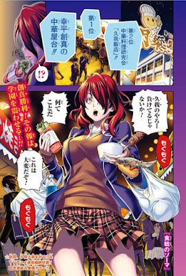 Como já é de tradição, vamos começar pelos mangás não ranqueado. Nessa edição tivemos capa para Shokugeki no Souma, que ganhou esse privilégio por ser uma série importante para a Shonen Jump, nenhum outro motivo – O motivo para darem página colorida para Haikyuu!! e Gintama também é o mesmo, não estão comemorando nenhum acontecimento especial, simplesmente deram a página colorida porque são séries famosos e muito respeitadas.