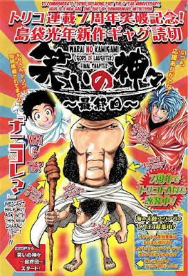 Chances de Serialização: Quase nulas – Tudo bem que o autor está terminando Toriko e seu próximo projeto poderia ser justamente Warai no Kamigami, porém esse one shot foi tão, mas tão mal recepcionado que duvido, caso Shimabukuro queira voltar para a comédia, que irá escolher justamente essa obra – O que para mim é uma ótima notícia, porque eu tenho quase certeza absoluta que caso Warai no Kamigami fosse serializado, não conseguiria durar nem 10 capítulos, seria um dos cancelamentos mais rápido da história da Weekly Shonen Jump (Essa aceitação do One Shot comprova isso)