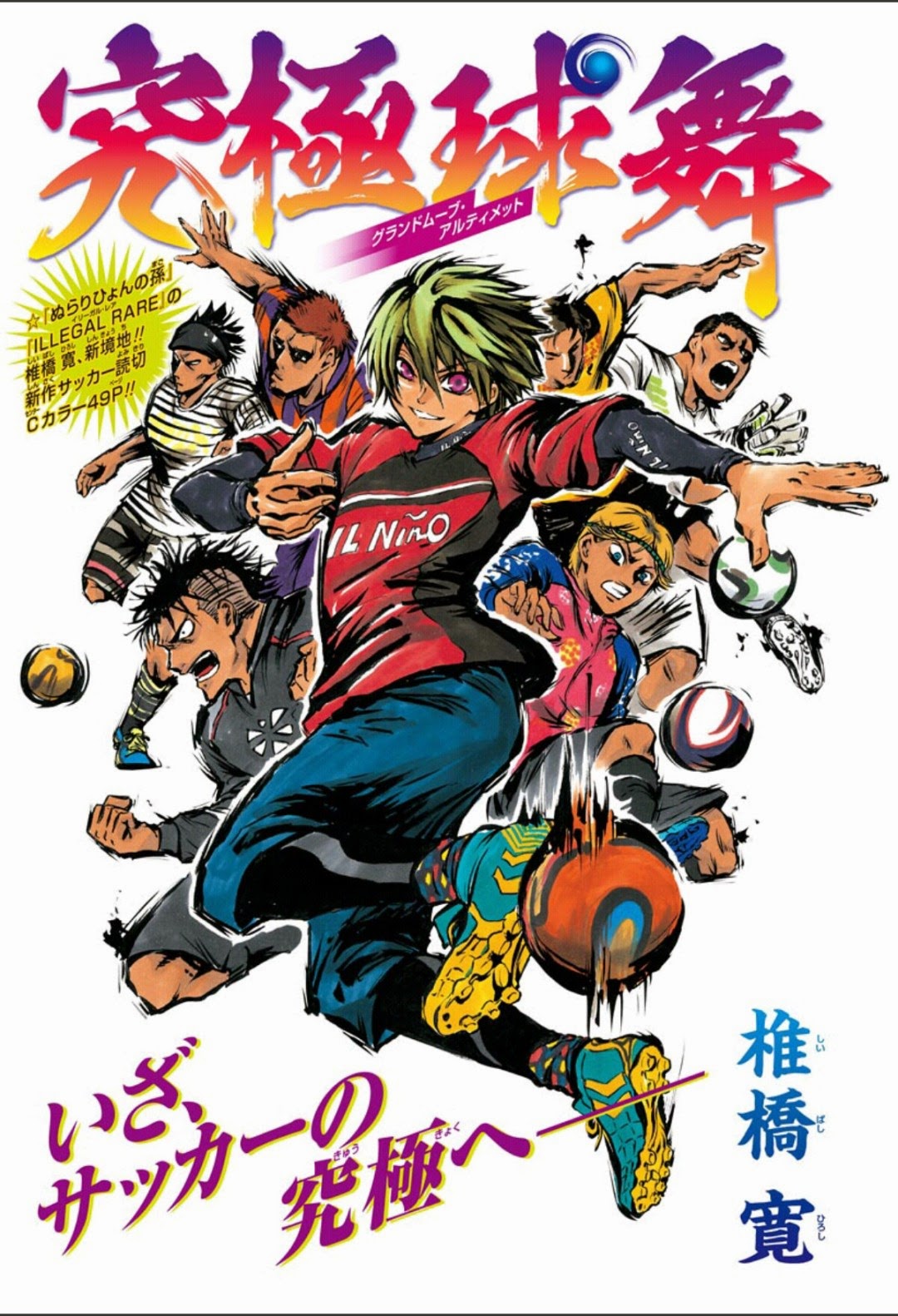 Quando eu soube que teria um novo one shot de Shiibashi (Autor de Nurarihyon no Mago) e desta vez seria sobre futebol, eu comemorei no meu quarto exatamente desse modo, mas como todo mundo sabe, alegria de pobre dura pouco. Ground Move Ultimate conta a história de um garoto que após passar vários anos na América do Sul, está de volta ao Japão, logo quando chega na terra do sol nascente, é desafiado para participar de um duelo de futebol de rua – E é nesse momento que o mangá começa a perder sua linha, o duelo é extremamente exagerado, o protagonista para roubar a bola faz certas jogadas que só somente o Luffy poderia fazer de tamanha elasticidade necessária para conseguir realizar-la… O vilão tenta de qualquer modo vencer o protagonista, mas fica claro ao longo das páginas que ele é muito superior, porém um desafio surge, o goleiro! (Para quem não sabe, o duelo acontece em uma arena fechada e tem um golzinho, por isso o goleiro cobre todo o gol), para conseguir vencer-lo, o protagonista dá um salto no ar e fazendo uma acrobacia fantástica consegue chutar a bola na grade da arena, fazendo que a bola vá ricocheteando pela arena até que consiga de forma genial entrar no gol.