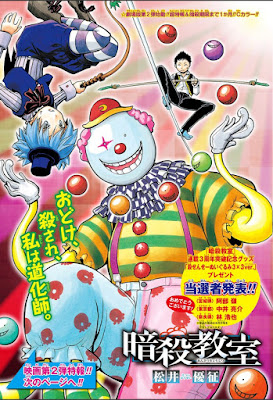 Foram somente três mangás que receberam página colorida nessa edição, são eles: Ansatsu Kyoushitsu, Isobe Isobee Monogatari e a última obra da Gold Future Cup, Carbonator – Acho que devo destacar o fato de Isobe ter recebido página colorida, já que isso mostra que os editores ainda colocam bastante fé no mangá, já que preferem dar página para a obra, do que dar o mesmo privilégio para mangás como Toriko e World Trigger, que só estão ganhando página colorida em seus respectivos aniversários. Sobre a Gold Future Cup, Cabornator será a última série o resultado da competição provavelmente será publicado em outubro deste ano, por mais que só teremos um vencedor, normalmente mais de uma obra acaba sendo serializada, então fiquem esperançoso de ver no futuro, um dos seus mangás preferidos da Gold Future Cup sendo serializado – Eu irei fazer a análise de cada uma das obras entre 14 e 19 de Setembro, não poderei fazer na próxima semana, pois essa edição só será lançada na segunda-feira e tenho que esperar ao menos 1 semana para ver a recepção de Cabornator.