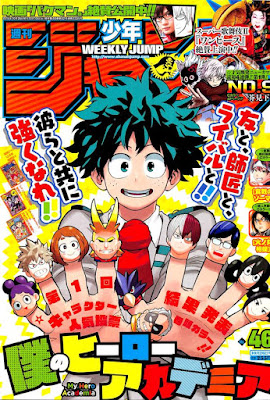 Começando pelos mangás não ranqueados, nessa edição tivemos capa e página colorida de abertura para “Boku no Hero Academia”. Acredito que os novos leitores do Analyse It pensam que o uso do “Deku” como ícone do nosso blog foi para seguir o sucesso da obra, mas o motivo foi totalmente a caso: Eu estava em busca de icone para o Blog, quando, em uma quarta-feira a Shonen Jump libera a capa de sua nova série, Boku no Hero Academia. Assim, decidi usar o rosto de “Deku” como icone, mesmo não sabendo se a série iria vingar ou não (Nem a raw da série ainda tinha sido divulgada). Mas não é que tivemos sorte e a série se tornou um sucesso gigantesco? Desde lá, Deku se tornou o mascote do Analyse It e nada melhor do que comemorar o aniversário justamente com outra capa dessa série que faz parte da história do blog.