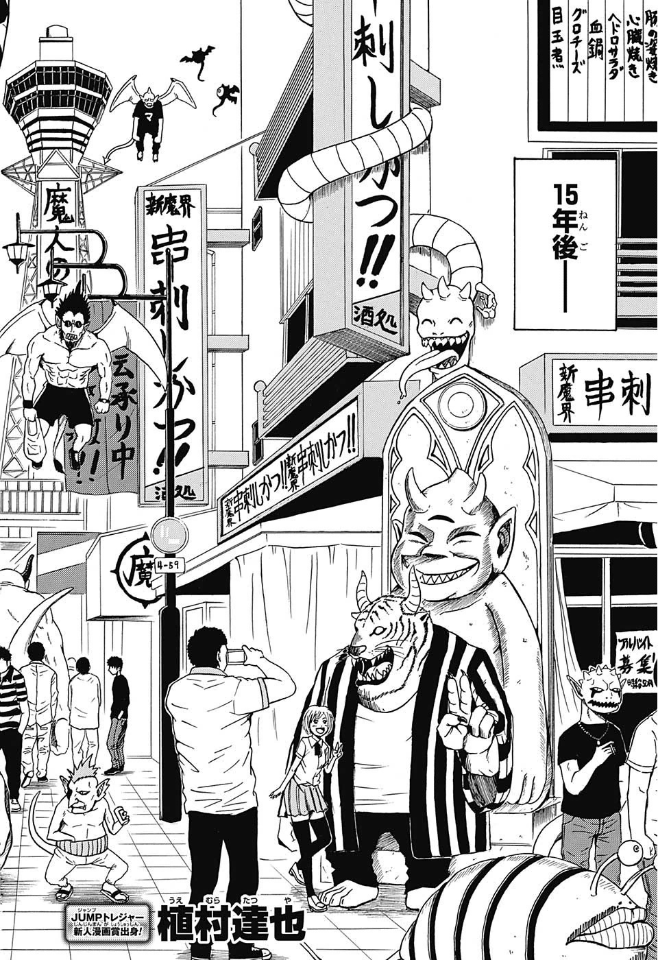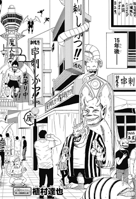 A edição das segundas chances continua, desta vez quem volta é Arima Youhei, autor que já havia lançado um one shot no volume 02 de 2014, chamado de: Mamoru-Kun – Uma obra de lutas exageradas como Beelzebub, porém com personagens sem carisma algum e uma história insignificante. Será que praticamente dois anos de pausa, fizeram o autor corrigir os próprios erros? Bem, no meu ponto de vista o autor realmente melhorou, mas continua insuficiente para conseguir dar certo na Weekly Shonen Jump. Yutoshi conta a história de um demônio que se perde na terra e vira amigo de um delinquente, o climax do capítulo é o antigo padrão do demônio (Essa bola com asas que tem na imagem) chegando na terra e decidindo destruir tudo, assim o delinquente com a força da bola com asas consegue salvar a terra. É uma história simples, que se parece MUITO, mas muito com Beelzebub.