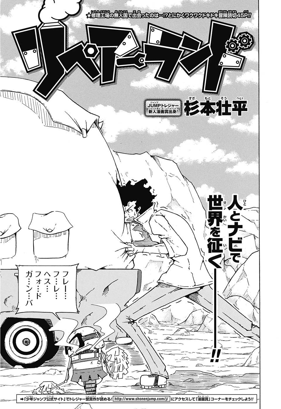 A autora de Roggy está de volta! Após ter o seu primeiro mangá cancelado com pouquíssimos capítulos, a Jump decidiu dar mais uma chance para a autora, talvez uma das grandes motivações desta nova possibilidade foram suas altas vendas do primeiro volume (Levando em conta que o mangá foi cancelado com apenas 13 capítulos). Aliás, a motivação pode ter sido tão grande que a deram a possibilidade de abrir a revista com o seu novo trabalho: “Yuasutorenja”: O mangá conta a história de três alienigenas que dão uma rápida passada pela terra, chegando no planeta encontrar uma casa abandonada onde tem um fantasma de uma pequena garota – Deste modo, este estranho trio decide ajudar-la a conseguir se comunicar os humanos, já que foi abandonada neste lugar. Os três chamam uma equipe de caça-fantasmas (Daqueles programas de TV que mostram que os fantasmas existem) e em uma sequência bem hilária, fazem com que a garota se comunique com todo o Japão. O mangá fala exatamente sobre o “esquecimento” e como na humanidade muitas pessoas são ignoradas (Fazem claras referências a guerra e a pobreza). Logo após completar a missão, os três alienígenas partem para um outro planeta.