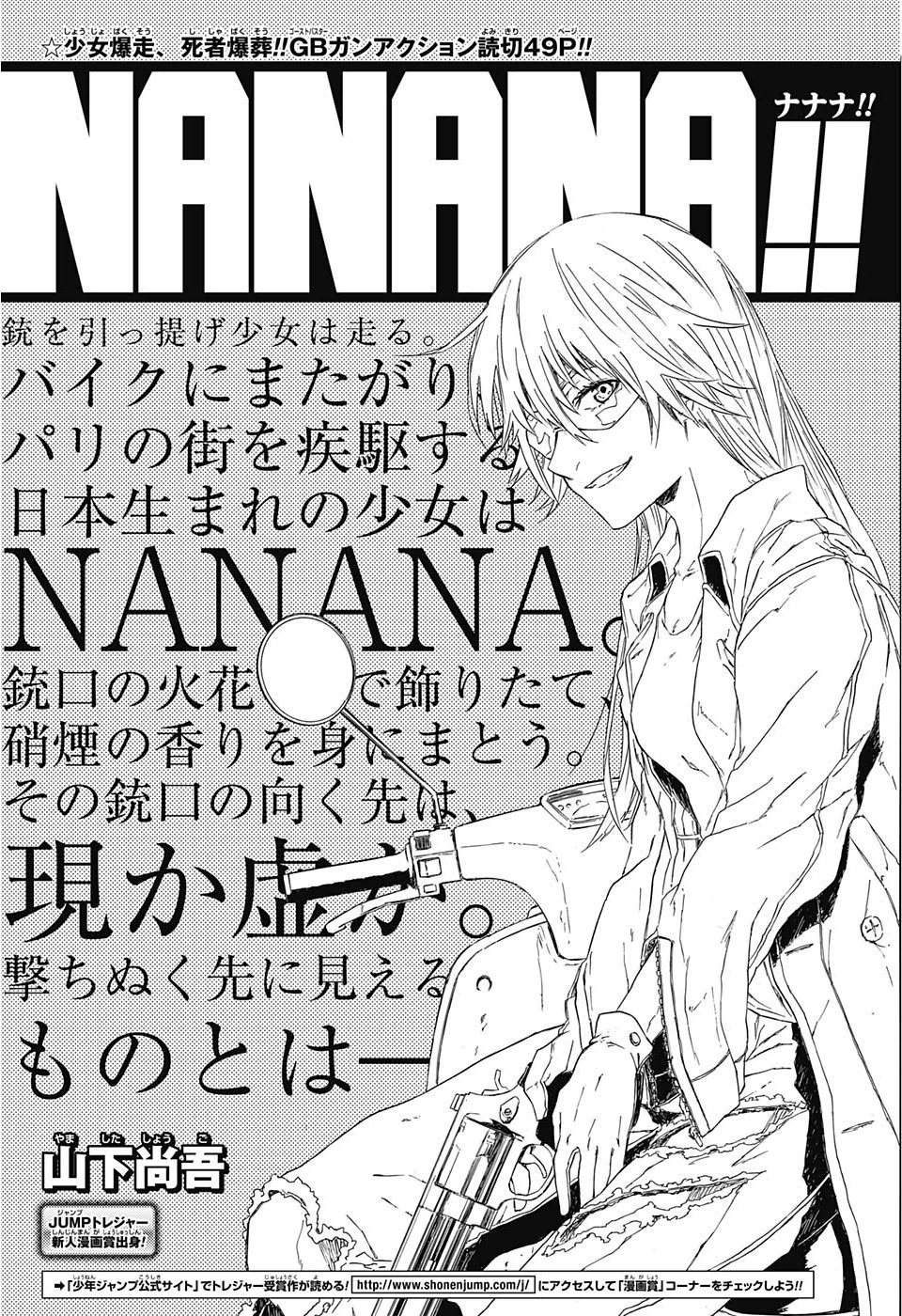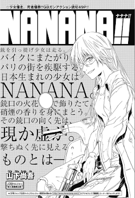 Batman, Beatles ou My Chemical Romance? Não importa, o que é realmente importante é que o vencedor da edição #03 está de volta! Após a ótima recepção de Killed Boy & Killed Girl, os editores decidiram dar mais uma possibilidade para o autor (O motivo de não serializaram o seu one shot anterior foi explicado na própria análise da edição, infelizmente por mais bom que tenha sido a história, ela era muito fechada, ao menos que o autor mudasse todo o produto, a história não haveria condições de ultrapassar a marca de 10 capítulo, por falta de conteúdo mesmo). Chegando neste novo trabalho de Shougo, Nanana! conta a história de uma justiceira que está investigando uma sequência de homicídios, quando descobre o filho do serial-killer: O garoto explica que o seu pai havia se tornado uma criatura estranha, com o corpo todo queimado e agora estava matando as pessoas (Tudo indica que foi possuído por um demônio), assim a justiceira decide liberar o homem daquela existência, após uma grande sequência de ação (Com vários punhos, socos e tiros).