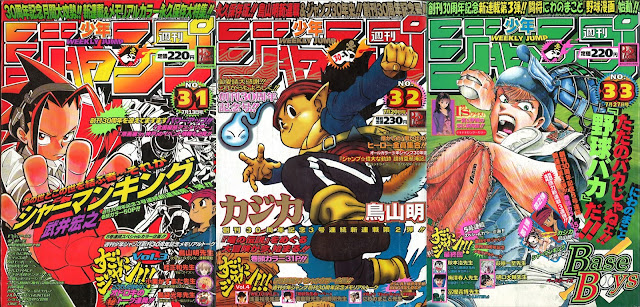 O primeiro mangá da leva foi o único que sobreviveu por muito tempo, “Shaman King” de Hiroyuki Takei, estreou com grandes expectativas, já que o autor havia conquistado muitos leitores com o seu mangá anterior “Butsu Zone”, lançado em 1997 e que foi cancelado com apenas três volumes. E “Shaman King” acabou não decepcionando de modo algum, o mangá se configurou como um grande sucesso e pelo resto do ano 1998 ficou constantemente entre as dez primeiras colocações. Podemos dizer que Hiroyuki Takei faz parte daquela lista grande de autores que até lançam uma primeira obra ruim, mas por causa do seu traço ou mesmo alguns aspectos positivos dessa primeira série, consegue conquistar vários novos leitores. Tabata Yuuki e Kubo são grandes exemplos de autores que entregaram inicialmente séries impopulares, mas mesmo assim conseguiram uma fã-base que serviu de apoio para quando lançaram a sua segunda obra. Logo após, na edição #32, os editores lançaram mais uma nova mini-série de Akira Toriyama que durou somente doze capítulos (Um volume).