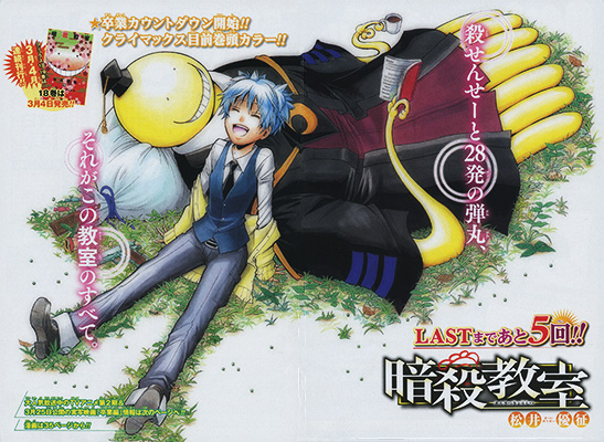 Se tem um mangá que conseguiu conquistar de maneira absurda o corações dos japoneses foi Ansatsu Kyoushitsu – O maior sucesso da Jump desde One Piece, desde o seu primeiro capítulo demonstrou ser uma grande mina de ouro para os editores e uma grande mina de “diversão” para os leitores. O mangá ainda não chegou ao seu fim, mas já anunciou ao seus leitores, nesta edição, que o adeus está mais próximo que nunca. Vamos ao TOC: