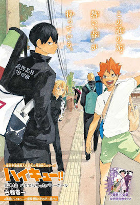 Também tivemos nesta mesma edição o primeiro capítulo da nova série mensal “Boruto”, que é conta a história do filho de Naruto. Acho interessante termos na revista uma série que seja lançada mensalmente, e espero que os editores decidam lançar mais mangás neste formato, como acontece na Young Jump que a maioria dos mangás são lançados semanalmente, mas alguns são quinzenais, mensais ou ocasionais. Como sabemos que as classificações não são resultados diretos das votações, e os editores usam muitos outros métodos para decidir se mantém uma série, acredito que uma série quinzenal ou mensal poderia conseguir sobreviver tranquilamente na revista. O importante é que ao menos aquela mensal possa lançar cerca de 40 páginas por capítulo. A edição #23 também reservou para nós belas páginas coloridas das séries: Haikyuu!! e Black Clover (que continua recebendo página colorida em quase todas as edições, para mim, uma decisão acertada por parte dos editores, já que a série tem um potencial comercial gigantesco).