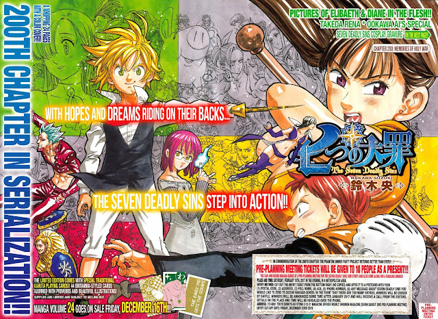 Um outro mangá que conseguiu entregar capítulos eletrizantes esse ano, é o nosso querido; Nanatsu no Taizai – Sinceramente, não pensem que sua queda de posição representou uma queda de qualidade, a série melhorou em comparação ao ano passado, somente que esse ano tiveram muitos outros mangás que melhoraram ainda mais, por isso, ficaram a frente da série. Logicamente a série sofreu um pouco com a constância, com alguns capítulos que não empolgavam, principalmente no início do arco, mas somando tudo que aconteceu na série no ano de 2016, podemos dizer que Nanatsu no Taizai entregou um ano ótimo para aqueles que acompanham semanalmente a série.