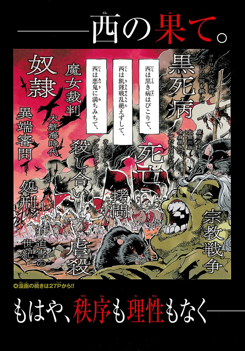 Na décima sexta colocação, Joujuu Senjin!! Mushibugyo é aquele tipo de mangá que não tem mais um rendimento elevado mas que ainda mantém apoio dos editores, a ponto de ganhar páginas coloridas de vez em quando. Inclusive, Mushibugyo vai ganhar página colorida na próxima edição. A obra pode não estar mais em seu melhor rendimento, mas o autor ainda poderá finalizar o mangá como melhor considerar.