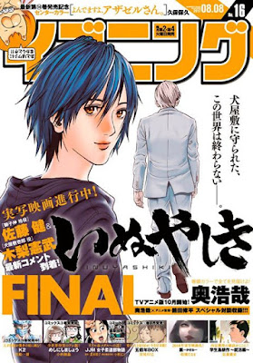 Ausentes: CITY c40, Hoozuki no Reitetsu c218, Madowanai Hoshi c21, Hyouge Mono c268, Kinou Nani Tabeta? c106, Sono “Okodawari, Ore ni mo Kure yo!! c32, Morning wo Tsukutta Manga-tachi c06, Meganebashi Hanako no Mitate c07, Manga Sadou – Manga de Yomu Sauna Michi (hiatus), Cicle Yarou (hiatus), Cesare~Hakai no Souzousha~ (hiatus), Vagabond (hiatus), Hataraki Man (hiatus)