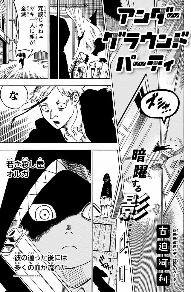 O mangá apresenta uma arte ainda amadora, que não consegue dar tanta emoção as cenas de ação – além disso o seu mundo distópico mesmo sendo legal, não é por nada interessante, é realmente o básico de um mundo futuristico, sem nenhuma peculariedade. Deste modo, Underground Party entrega um roteiro mais que do básico, chato.