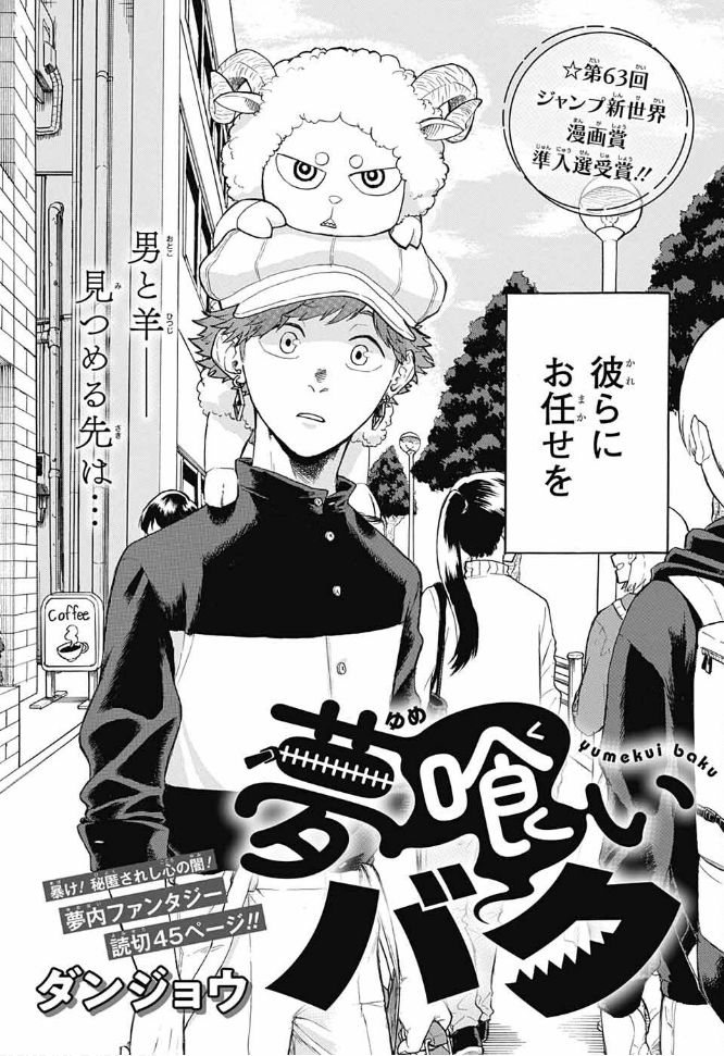 Yumekui Baku é um mangá muito interessante, escrito e desenhado por um novato. Conta a história de uma dupla (um ser “humano” e uma ovelha que parece que saiu diretamente de Katekyou Hitman Reborn) que cura pessoas dos seus pesadelos. O caso desse One-Shot é a irmã de uma garota que está sendo consumida pelo monstro do seu pesadelo (relacionado a um “bullying” que ela sofria na escola), assim os heróis entram no pesadelo da garota para salvá-la.