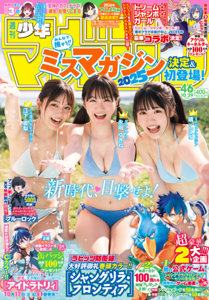 Várias modelos na capa em comemoração aos concursos de miss para a Weekly Shonen Magazine e a Young Magazine, porém a abertura de mangá vai para Shangri-la Frontier, obviamente com páginas coloridas, comemorando a popularidade do arco dos coelhos.
