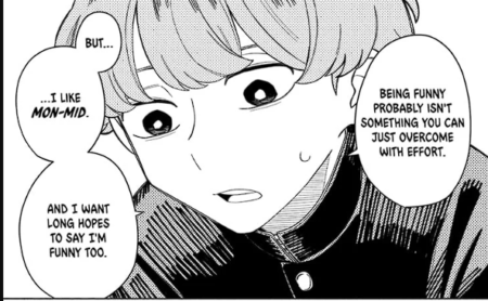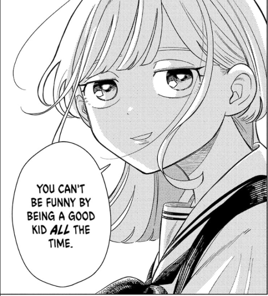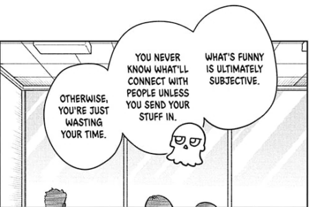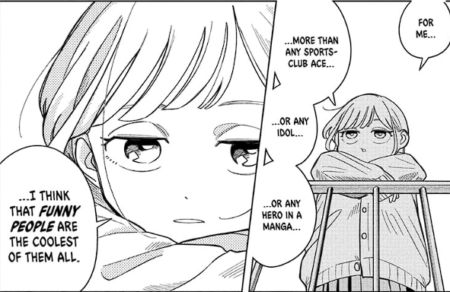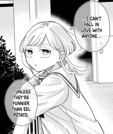 Kurage, our co-protagonist, is the goal of our protagonist. If being funny is the mission, we want to resemble the funniest person in the room. We want to be like the Eel-Potato. Kurage does not try to be funny. She simply is. Being effortlessly funny means being Kurage. You probably know someone like this, always ready to make you laugh in any situation.