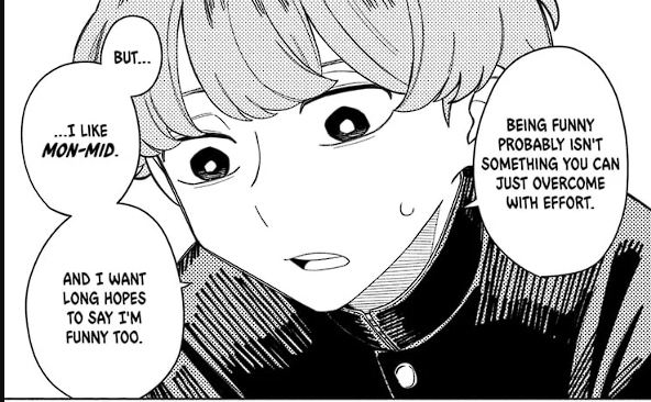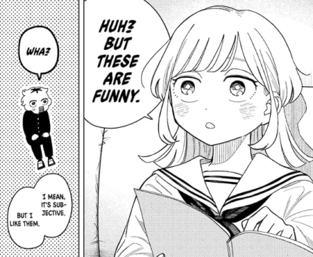 Now, remember the word I used at the start of the text, “convoluted.” I didn’t use it only because it’s fancy. I used it because it’s appropriate. Something convoluted folds onto itself or around something else. No comedy is only one thing. Comedy blends different kinds in different degrees. How would you classify Gintama or Witch Watch using this silly system? Witch Watch can be nonsense one moment and serious the next. Morihito can be the composed guy and also the featured idiot. The series mixes fights and romance within the same chapter. It’s a glorious fruit salad.