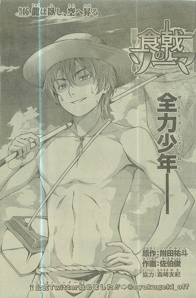 Soma encontrou outro adversário a sua altura, e neste capítulo foi todo se preparando para este confrontar ele com a melhor receita possível. A rivalidade está bastante interessante e ainda por cima, ver o principal (Yukihira Soma) gastando sua noite a pesquisa da receita perfeita foi bastante interessante. A briga vai ser de alta qualidade… Mas acho que Soma vai ganhar. O desenho continuou impecável como sempre, nem tem como criticar.