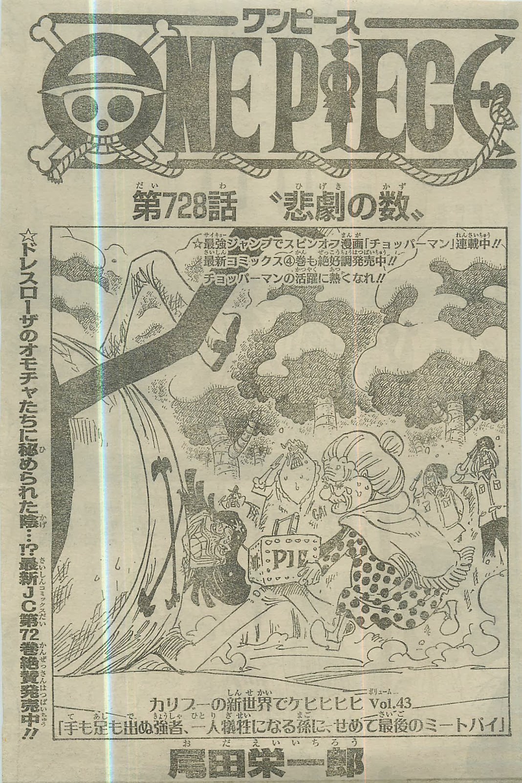 Este arco está simplesmente épico, de explodir cabeças! Um capítulo inundado de revelações, Violet é da familia real, foi um bando do chapéu de palha que estimulou a revolução dos anões, entre outras coisas! Oda vem demonstrando que ainda consegue guiar One Piece de forma magistral. Estou simplesmente viciado nesta saga, este foi um capítulo quase perfeito! – Flashback bem tenso ein? No Anime deve ficar mais dramático ainda!
