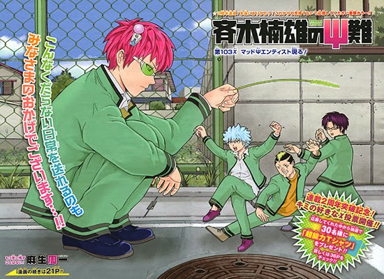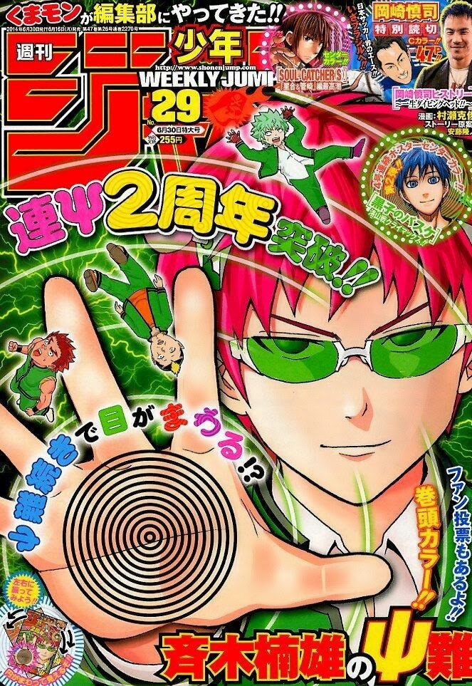 Comecemos, como sempre com as páginas coloridas – Nesta edição tivemos uma capa, em comemoração aos 2 anos de publicação, de PSI Kusuo Saiki – Um grande feito para um mangá de comédia que tendem a perder muito rendimento após 1 ano de estréia. O autor de PSI vem demonstrando que consegue fazer um ótimo humor, sem cair na mesmice.