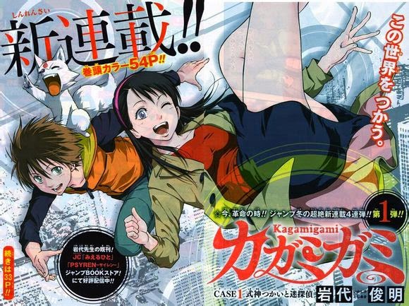 Como já é de tradição, começamos pelos mangás não ranqueados. Neste edição tivemos a estréia de Kagamigami, que será um mangá que misturará investigação com battle shounen, a obra é o terceiro mangá do autor veterano, Toshiaki Iwashiro. É a primeira nova carta do baralho da Shonen Jump e um total de mais quatro que irão estrear. Espero que o autor consiga emplacar seu primeiro grande sucesso, até agora, nenhum dos seus outros dois mangás conseguiram se destacar o bastante ao ponto de ganhar uma versão em anime, por exemplo. Boa sorte, Iwashiro!