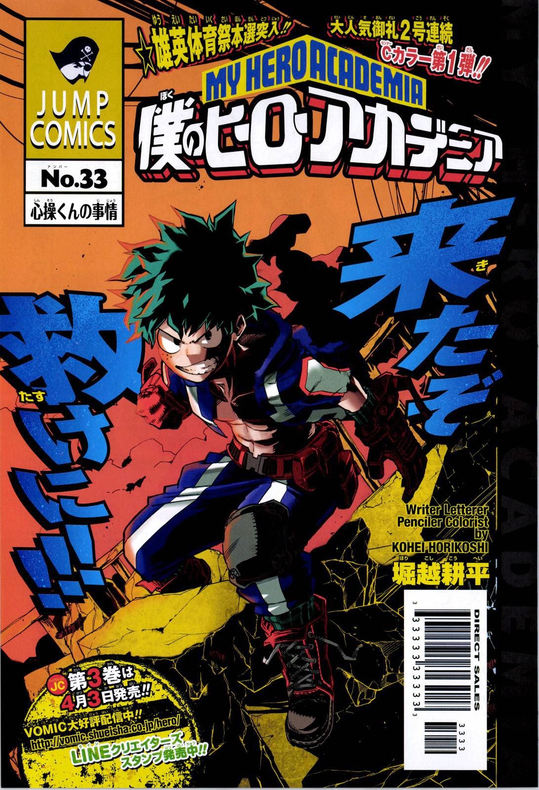 Shonen Jump #15 (09/03): One Piece (Cover ePágina Colorida de Abertura) 01 – Ansatsu Kyoushitsu 02 – Haikyuu!! Ultra Battle Satellite (Página Colorida) 03 – Hinomaru Zumou 04 – Shokugeki no Souma Kaizo Ningen Roggy (Terceiro Capítulo) Boku no Hero Academia (Página Colorida) Kagamigami (Quinto Capítulo) 05 – Gintama Isobe Isobee Monogatari (Página Colorida) 06 – Toriko Black Clover (Quarto Capitulo) 07 – PSI Kusuo Saiki 08 – Nisekoi 09 – World Trigger Kochikame 10 – Bleach 11 – Takujou no Ageha 12 – Gakkyuu Hotei