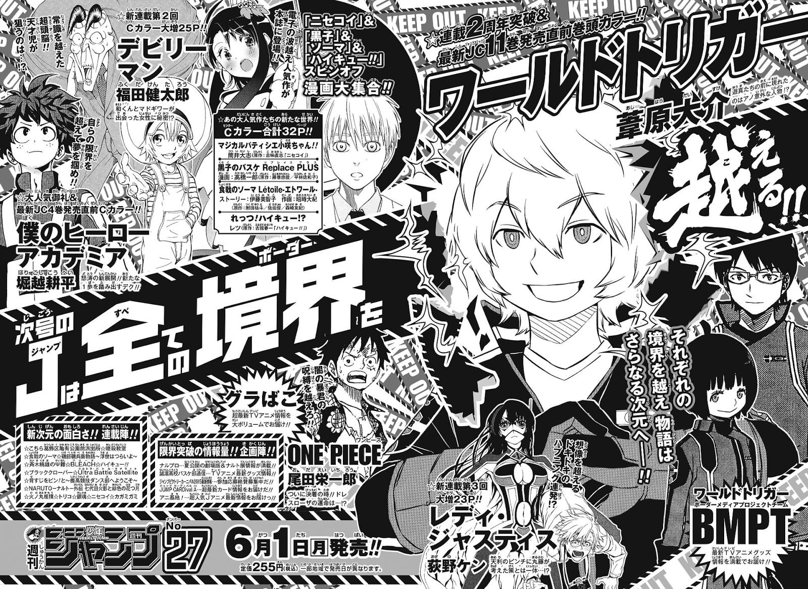 World Trigger ficou em décimo lugar, finalmente a obra vai receber a sua tão pedida capa de aniversário na próxima edição (Tudo bem, não será mais de aniversário, mas podemos fingir que é). Isso demonstra que os editores ainda colocam esperança no mangá e tem objetivo de mante-lo na revista por um tempo, isso é reforçado com o fato dos editores já deixarem claro que irão manter World Trigger mesmo com a doença do autor, por isso vão manter mesmo com o mangá sendo lançado de modo irregular… Com certeza o autor tem uma fantástica relação com os editores para ter tantas regalias.
