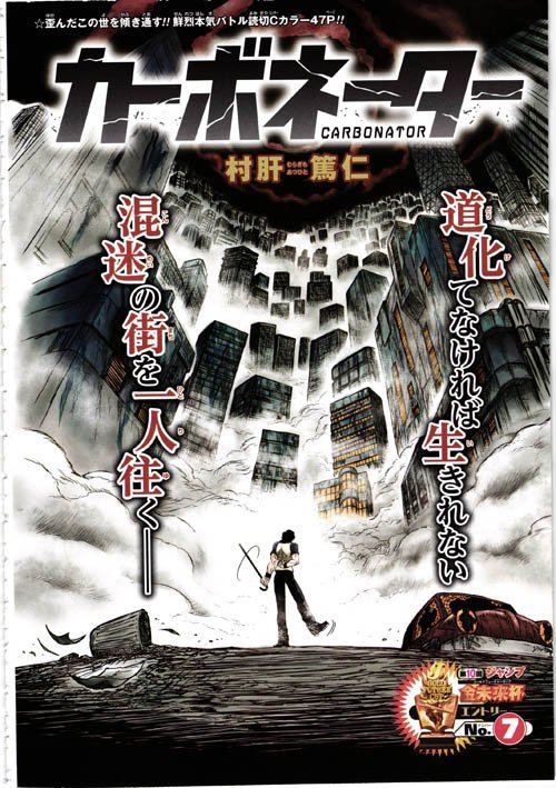 Foram somente três mangás que receberam página colorida nessa edição, são eles: Ansatsu Kyoushitsu, Isobe Isobee Monogatari e a última obra da Gold Future Cup, Carbonator – Acho que devo destacar o fato de Isobe ter recebido página colorida, já que isso mostra que os editores ainda colocam bastante fé no mangá, já que preferem dar página para a obra, do que dar o mesmo privilégio para mangás como Toriko e World Trigger, que só estão ganhando página colorida em seus respectivos aniversários. Sobre a Gold Future Cup, Cabornator será a última série o resultado da competição provavelmente será publicado em outubro deste ano, por mais que só teremos um vencedor, normalmente mais de uma obra acaba sendo serializada, então fiquem esperançoso de ver no futuro, um dos seus mangás preferidos da Gold Future Cup sendo serializado – Eu irei fazer a análise de cada uma das obras entre 14 e 19 de Setembro, não poderei fazer na próxima semana, pois essa edição só será lançada na segunda-feira e tenho que esperar ao menos 1 semana para ver a recepção de Cabornator.
