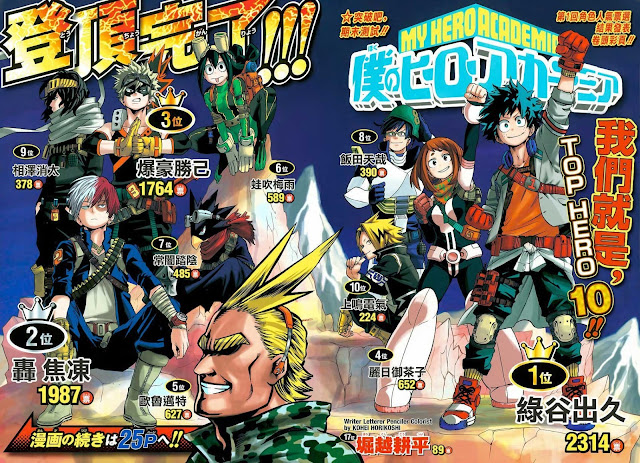 Boku no Hero Academia (Capa, Página Colorida de Abertura e Resultado da Pesquisa de Popularidade)