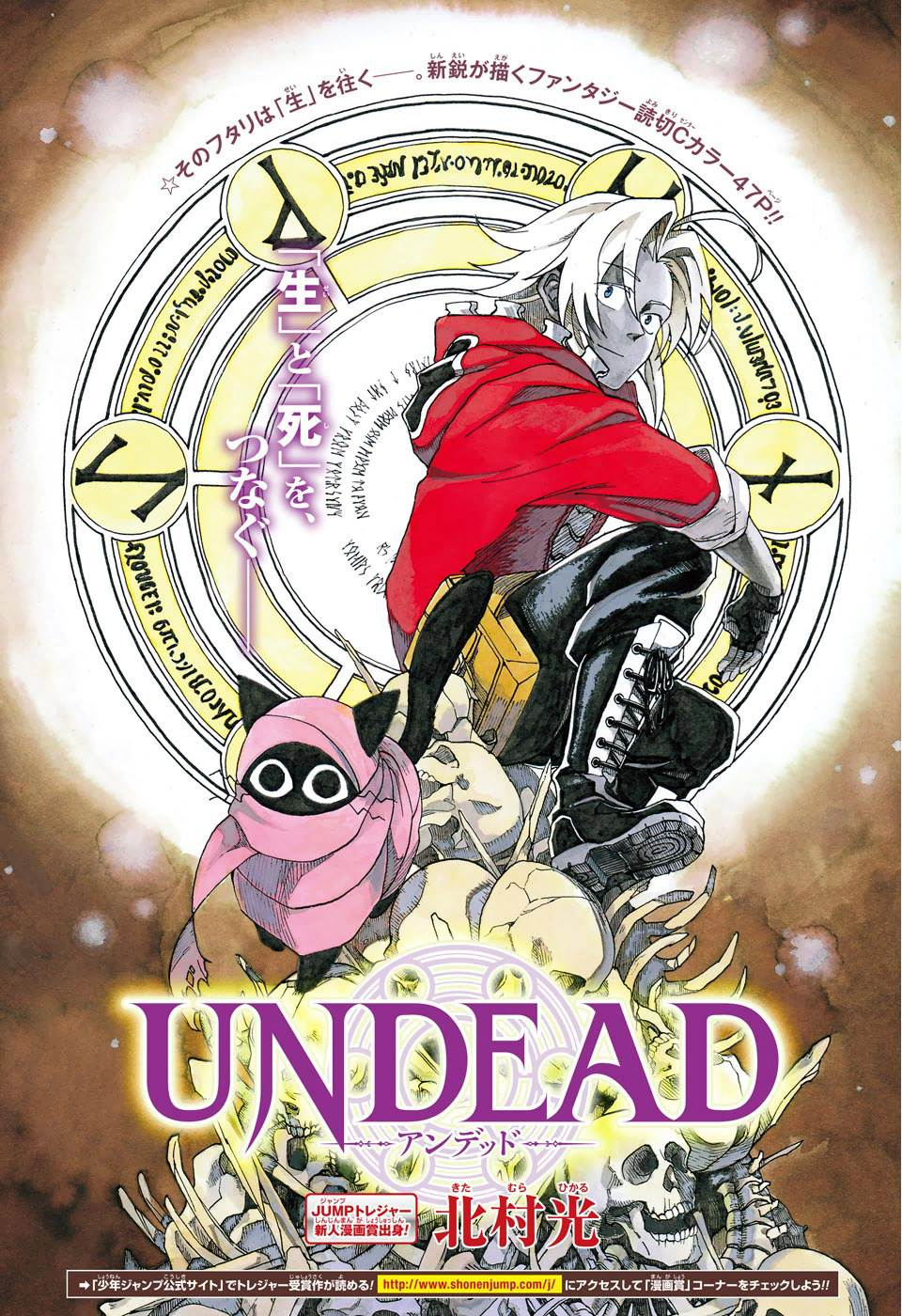 Undead convence. Kitamura Hikari apresenta uma história bem simples e pontual. Os personagens são carismáticos e o mascote que anda junto com o protagonista é muito fofo, o desenvolvimento do one shot é razoavelmente bom, já que o autor explica somente o necessário para a compreensão da história, sem querer explicar todo o universo e por fim, a sua arte evoluiu bastante em comparação a “Refrain”, inclusive os inimigos, mesmo não sendo criativos, foram realmente bem desenhados. Deu para sentir pelo traço quanto foi cruel transformar o pai da garota na criatura que vimos. Undead realmente convence como história e te faz querer que de algum modo seja serializado da Jump.