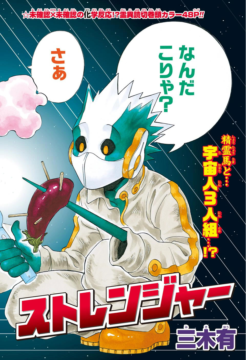 A autora de Roggy está de volta! Após ter o seu primeiro mangá cancelado com pouquíssimos capítulos, a Jump decidiu dar mais uma chance para a autora, talvez uma das grandes motivações desta nova possibilidade foram suas altas vendas do primeiro volume (Levando em conta que o mangá foi cancelado com apenas 13 capítulos). Aliás, a motivação pode ter sido tão grande que a deram a possibilidade de abrir a revista com o seu novo trabalho: “Yuasutorenja”: O mangá conta a história de três alienigenas que dão uma rápida passada pela terra, chegando no planeta encontrar uma casa abandonada onde tem um fantasma de uma pequena garota – Deste modo, este estranho trio decide ajudar-la a conseguir se comunicar os humanos, já que foi abandonada neste lugar. Os três chamam uma equipe de caça-fantasmas (Daqueles programas de TV que mostram que os fantasmas existem) e em uma sequência bem hilária, fazem com que a garota se comunique com todo o Japão. O mangá fala exatamente sobre o “esquecimento” e como na humanidade muitas pessoas são ignoradas (Fazem claras referências a guerra e a pobreza). Logo após completar a missão, os três alienígenas partem para um outro planeta.