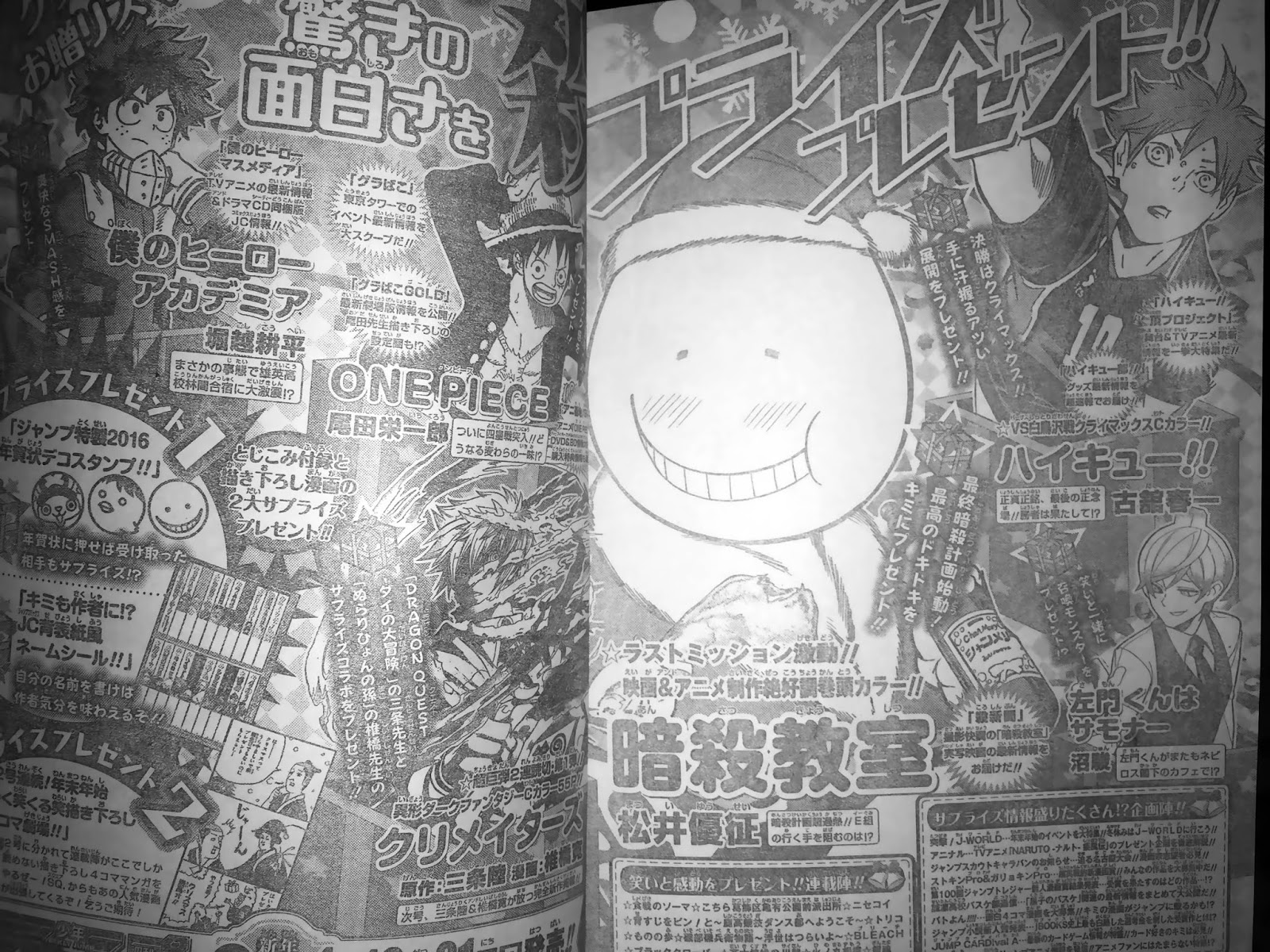 Em quarto lugar tivemos Ansatsu Kyoushitsu – Não lembro a última vez que os editores colocaram a obra em uma posição tão baixa, contudo, acredito que o motivo desta posição é bem claro: Querem dar publicidade a duas obras novatas que acabaram de lançar seus novos volumes (Sesuji wo Pin! to e Black Clover), além disso vão compensar a obra dando uma bela página colorida de abertura na próxima edição (Página que também servirá como publicidade para a segunda temporada do seu anime que será lançado dia 07 de Janeiro). Por fim, a obra está chegando ao seu fim, desenvolvendo o seu arco final, provavelmente não irá passar do primeiro semestre deste ano, não é que uma quarta posição irá influenciar no seu futuro. Resumidamente, Ansatsu Kyoushitsu conquistou uma posição baixas para o seu padrão, mas não é nada de preocupante.