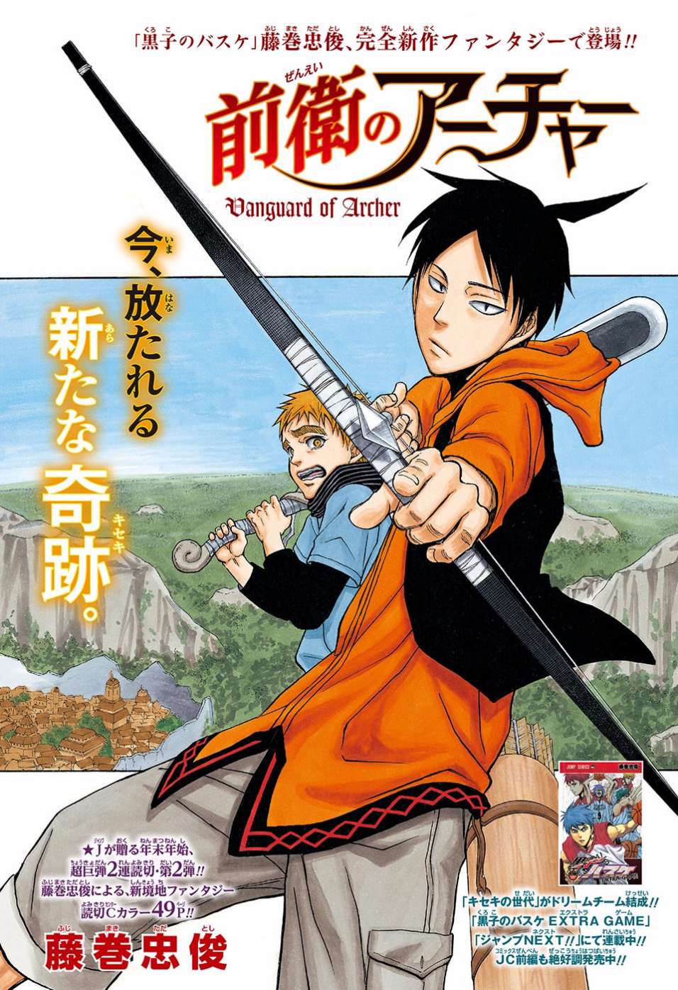 Também tivemos nessa edição quatro páginas coloridas especiais: Duas para as duas únicas séries B-Shounen que deram certo na revista nos últimos dois anos, e as outras duas para “capítulos especiais”, incluindo o novo one shot do autor de Kuroko no Basket, chamado de Zenei no Archer. Como se pode notar pelo nome, o mangá terá alguma relação com arco e flecha, contudo não se sabe será um mangá esportivo relacionado ao tiro de arco ou mesmo será um mangá de battle shounen onde o protagonista usa um arco como arma. As duas opções são bem promissores, a primeira opção seria algo jamais visto na Weekly Shonen Jump e a segunda opção seria uma ótima obra de B-Shounen. Em breve saberemos do que se trata o one shot.