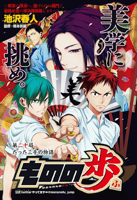 Nesta edição também tivemos página colorida para outras três séries: A grande surpresa foi os editores decidirem colocar “Mononofu” acima de “Hinomaru Zumou”. Por mais que isto não signifique que os editores estão preferindo o mangá de shogi, significa que eles acreditaram que nessa edição, ao menos, valia mais a pena dar mais destaque a Mononofu, que precisa aumentar as suas vendas (Podemos dizer que a série teve um início pior que o de Hinomaru Zumou, o que é bem preocupante). Talvez seja comum vemos Mononofu conquistando boas colocações até ser lançado o seu segundo volume: Os editores querem transformar a série em um sucesso e farão de tudo para que isto aconteça. Pior para Hinomaru Zumou que deve receber um pouco menos de atenção do grupo editorial.