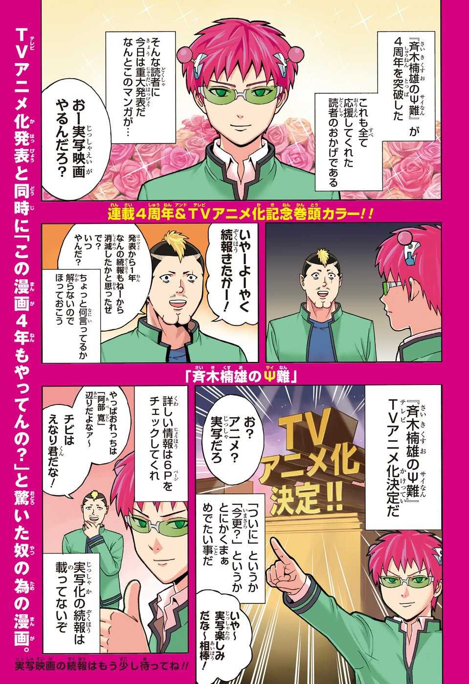 PSI Kusuo Saiki (Capa, Pagina Colorida de Abertura e Anúncio do Anime produzido pela JC Staff)