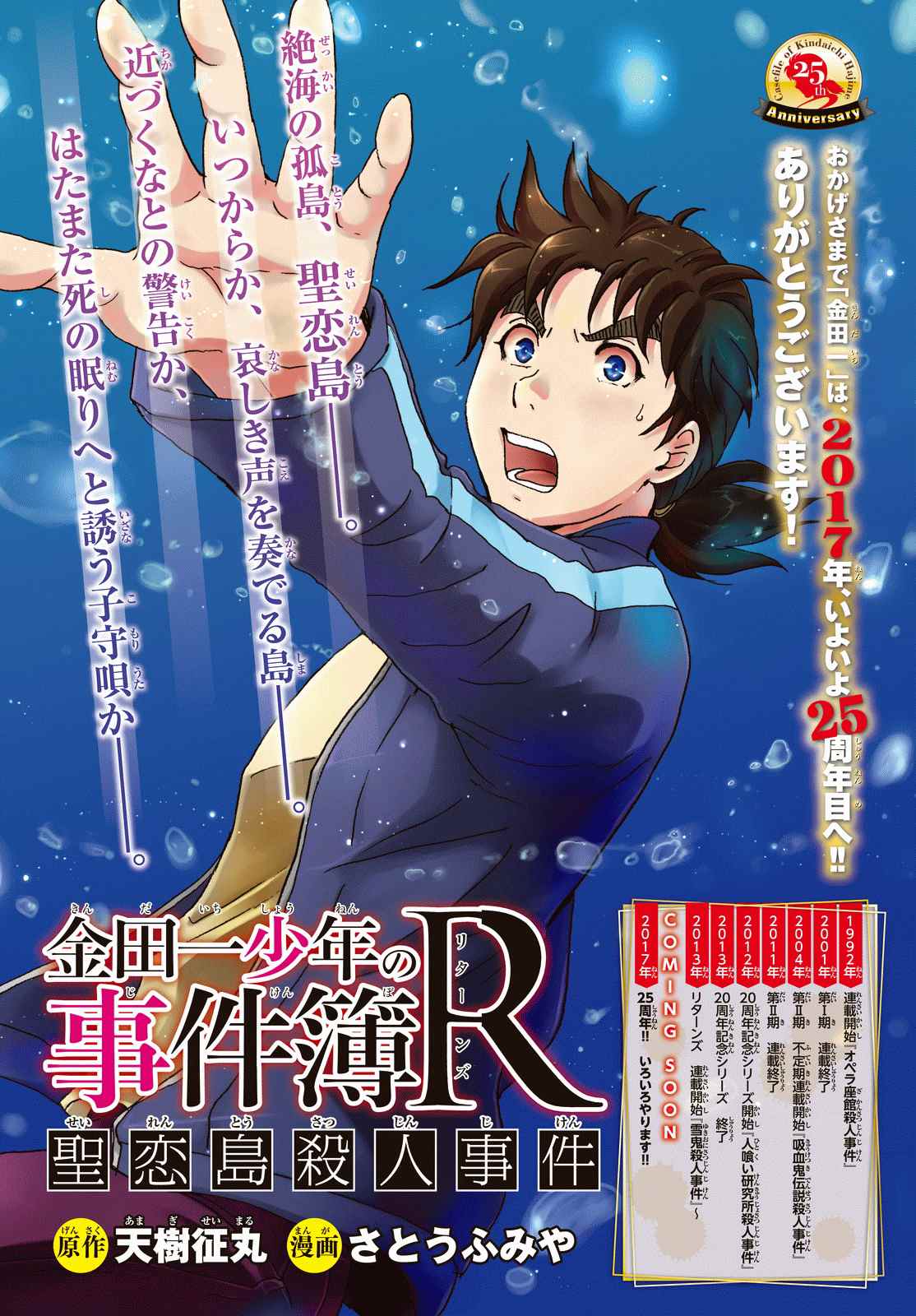 As outras páginas coloridas foram para Kindaichi Shounen no Jikenbo R e Fuuka. Kindaichi acaba de retornar de um hiato que foi iniciado na edição #41 de 2016. Desde então o mangá esteve ausente por doze edições seguidas, só vindo a retornar justamente na primeira TOC de 2017. Quanto a Fuuka, falta exatamente um mês para a estreia de seu anime e os editores, como já era previsto, vão dar bastante destaque ao mangá com páginas coloridas e capas digitais pra divulgar a adaptação.