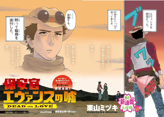 A capa da edição foi para Detective Conan… Mas o mangá só ganhou a capa. Portanto está sendo ranqueado em primeiro lugar. As páginas coloridas de abertura foram para o novato Hoankan Evans no Uso 〜Dead or Love〜 , que parece que será um faroeste com elementos de comédia e romance. Essa proposta a meu ver é interessante e pode render uma boa obra se desenvolvida com competência. O mangá ganhou quatro páginas coloridas nesse capítulo de estreia.