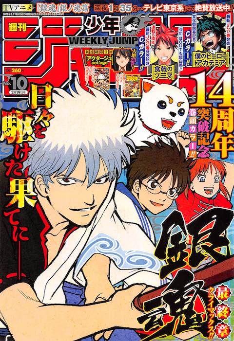 Em nono lugar tivemos Saiki Kusuo no Sainan (PSI Kusuo Saiki), que está preparando o terreno para se tornar a principal comédia da revista, com o encerramento de Gintama. A revista vem tendo grandes problemas em achar comédias de sucesso, fazendo assim que tenhamos somente duas séries de sucesso no gênero na revista: PSI Kusuo Saiki, Yuragi-Sou no Yuuna-San e Boku-tachi wa Benkyou (Tem Gintama, mas já está acabando) – Sendo que desses três mangás, dois tendem a não agradar o público feminino, que deve correspondem 40% dos comprantes. Devemos ver se Tomatoypoo vai conseguir entrar nesse clube, fortalecendo as comédias da revvista. Em décimo lugar tivemos Hinomaru Zumou, que continua com suas vendas extremamente baixas, mas para sua sorte, em breve será lançado o seu anime que poderá aumentar suas vendas.