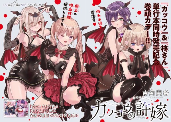 Com volume novo no mês, Kakkou no Iinazuke ganhou as primeiras páginas coloridas da edição 51 com uma arte das heroínas como vampiras. É uma colaboração com o outro mangá em andamento de Miki Yoshikawa, Hiiragi-san Chi no Kyuuketsu Jijou, uma comédia romântica sobre vampiros.