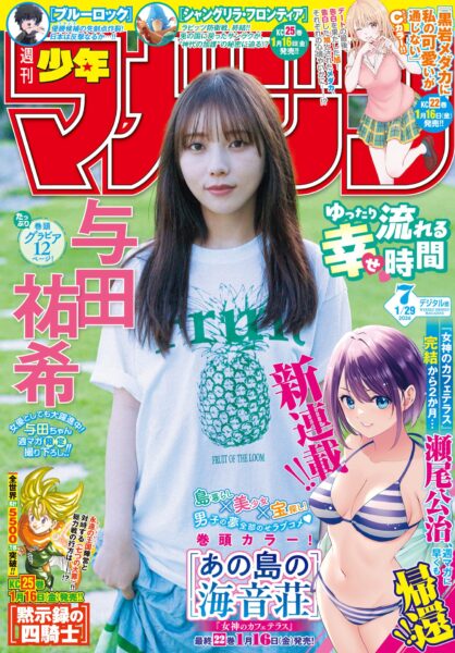Pode surpreender, mas a capa foi para uma idol e não para o novo mangá do lendário Seo Kouji, com inúmeros hits na Shonen Magazine. O por que? Acho que justamente por ser algo “esperado” que ele volte. De qualquer forma, o mangá ainda ganhou um bom destaque na capa e, obviamente, as primeiras páginas coloridas.