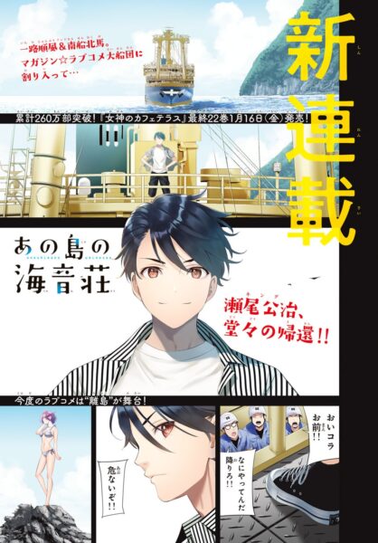Estamos falando de Ano Shima no Umine-sou, a mais nova comédia romântica do autor que recém terminou Megami no Café Terrace, e volta em poucos meses.