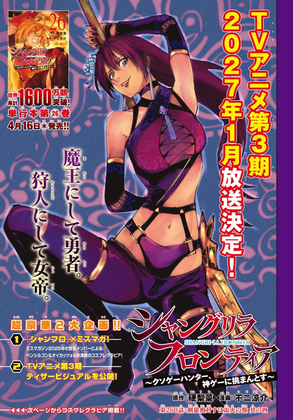 A revista traz a informação de que a terceira temporada do anime começará em Abril de 2027, um key visual e depois mostra os cosplays, realizados por modelos que participaram do Miss Magazine 2025, o concurso de gravure da revista.