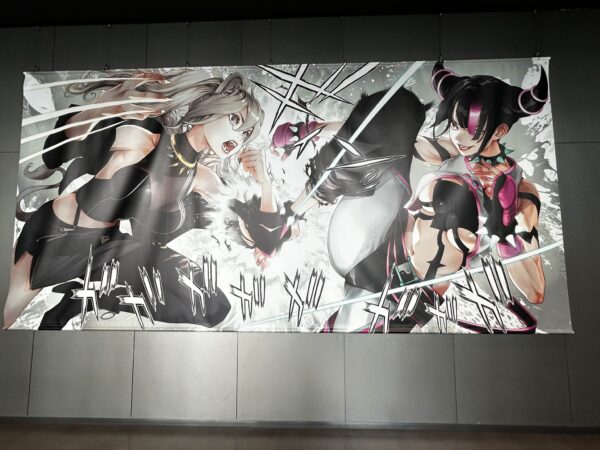 Esses torneios são bem populares no Japão, aonde Street Fighter tomou o posto de e-sport do momento e ganha números excelentes em stream. Aproveitaram a oportunidade para promover Kaijin Fugeki lá e fazer uma exposição de artes do Oh Great, algo que traz o nome do artista para um público mais jovem. Geralmente não pego muitas imagens fora das páginas coloridas, mas deixarei algumas do evento aqui.