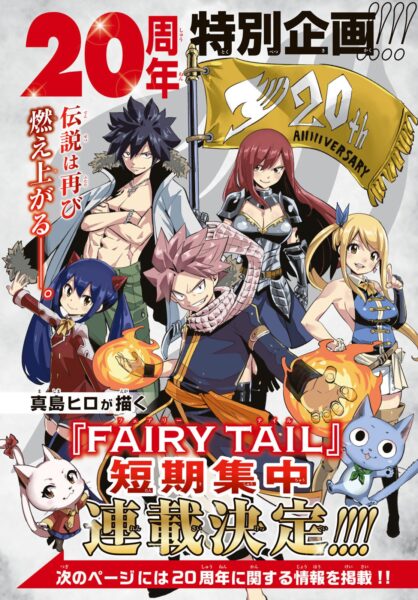 São 20 anos de Fairy Tail e a celebração terá vários eventos começando em 2026 e vários durante 2027, isso inclui diversas lojas, merch, eventos, etc. Mas o que interessa mais à revista é o fato de que Fairy Tail retornará para uma serialização CURTA.